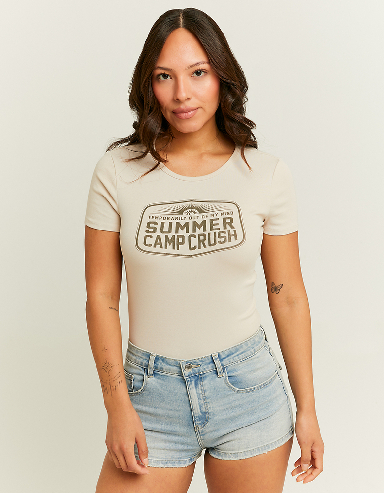 Beige Regular Printed T‑Shirt