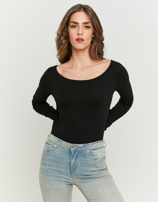 Boat Neck Black T‑Shirt