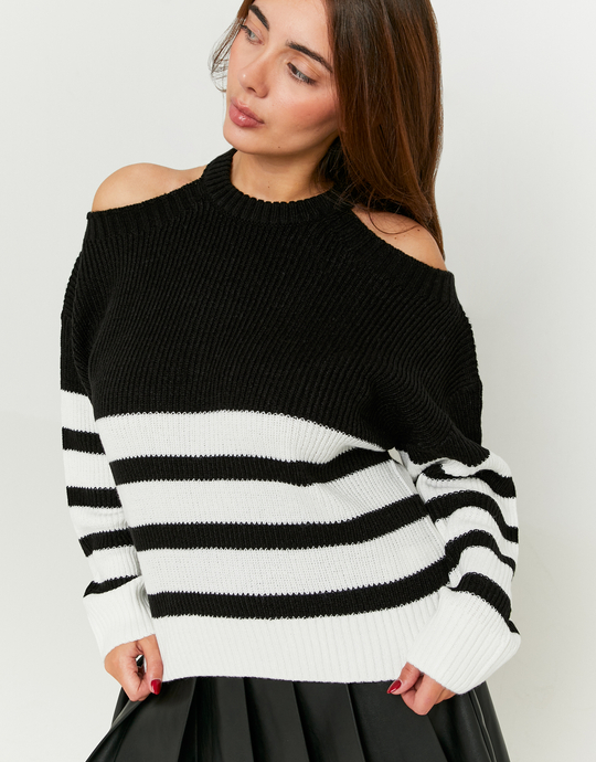 Get ready to stand out in our Black and White Striped Jumper with Shoulder Cut Outs! 🖤✨ This stylish piece combines classic stripes with a trendy twist, making it the perfect addition to your wardrobe. Made from soft, ribbed fabric, it feels amazing against your skin while keeping you cozy all day long. The shoulder cut outs add a fun, flirty touch, giving you that chic vibe that’s perfect for any occasion. With a round neck and long sleeves, this jumper is super versatile—pair it with jeans for a casual day out or dress it up with a skirt for a night on the town. Embrace your unique style and turn heads wherever you go! 💖🔥