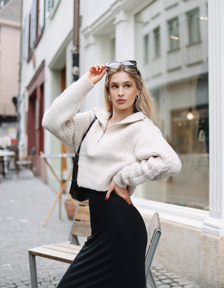Stay fresh and fabulous in our White Jumper with Zip Up! 🤍✨ This stylish cropped jumper is your go-to for effortless chic. Made from soft, ribbed fabric, it feels amazing on your skin while keeping you cozy. The zip-up feature adds a cool twist, making it super easy to layer or wear on its own. With long sleeves to keep you warm, this jumper is perfect for those breezy days. Whether you’re pairing it with high-waisted jeans for a casual vibe or dressing it up with a cute skirt for a night out, this white jumper is a must-have in your wardrobe. Get ready to shine bright and turn heads wherever you go! 💖🔥