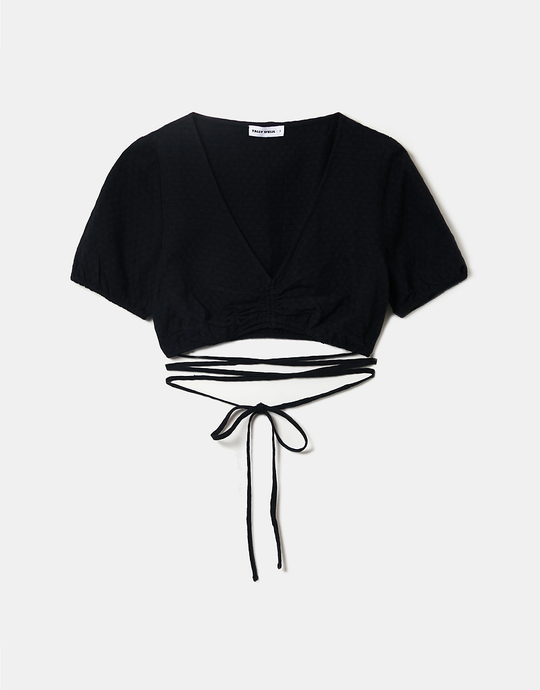 Linen Lace Up Cropped Top