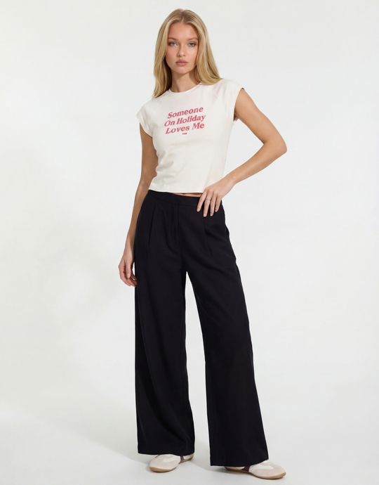 These black wide leg trousers bring a clean and effortless feel to your everyday looks. Designed in a relaxed wide leg fit, they offer comfort and movement while keeping a sharp silhouette. Made from lightweight linen, they feel breathable and easy to wear on warm days. Finished with a zip closure, they pair perfectly with fitted tops or relaxed shirts for casual and trendy outfits.