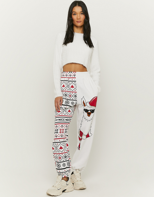 Pantaloni da Jogging Stampati a Vita Alta Bianchi