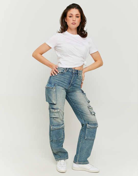 Jeans Cargo Multitasche a Vita Media
