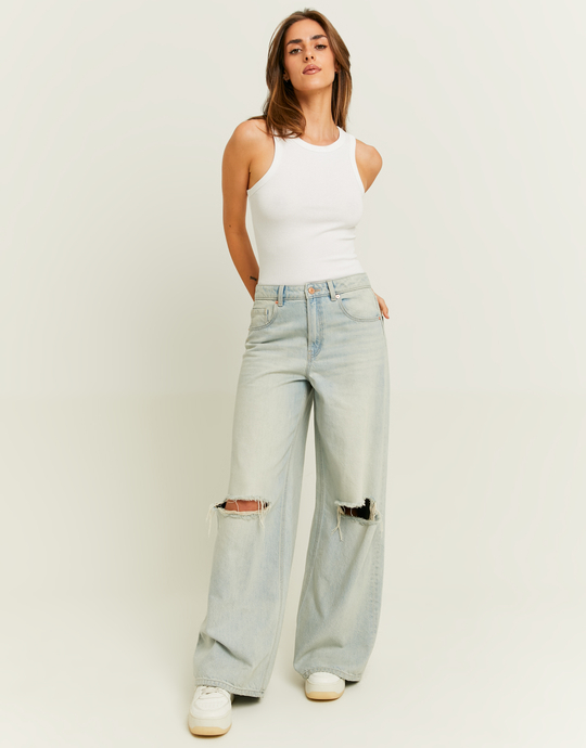Jeans Palazzo a Vita Media con Strappi