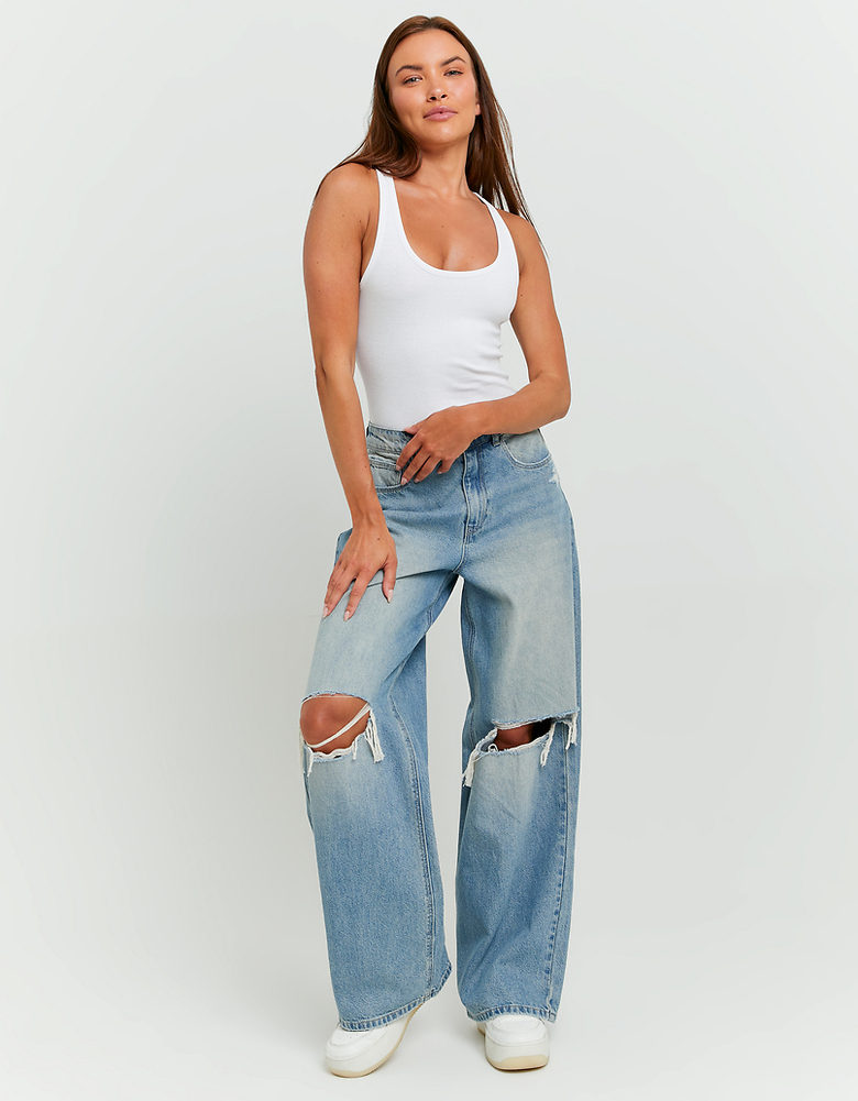 Jeans Baggy a Vita Media con Strappi
