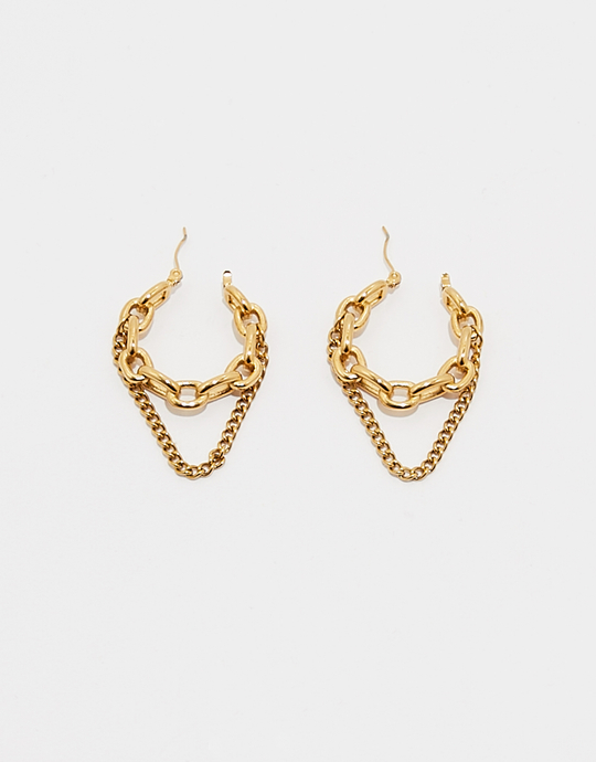 Orecchini a cerchio con catena dorata