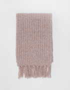 Sciarpa Rosa in Maglia a Coste con Bordo Sfrangiato