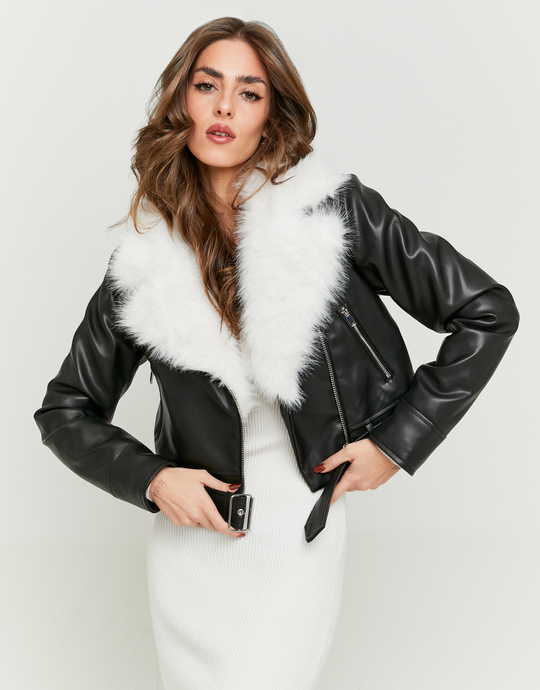 Giacca Biker Nera con Finta Pelliccia