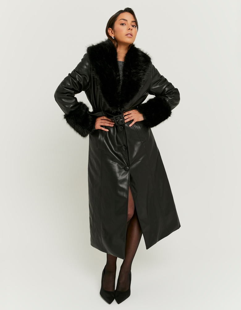 Cappotto Lungo Nero con Pelliccia Sintetica