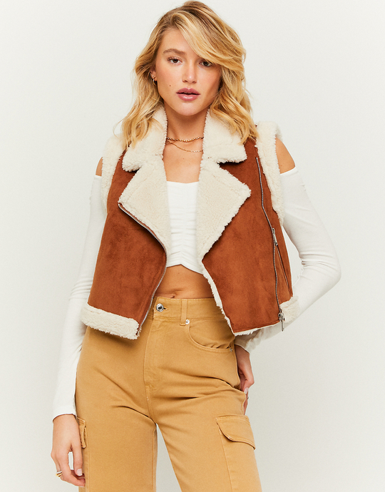 Montone Corto Smanicato In Similpelle