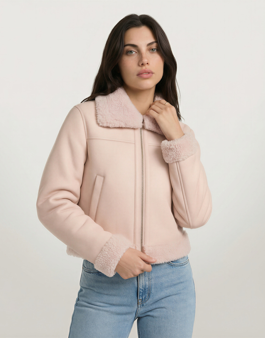 Giacca Aviatore in Similpelle Rosa