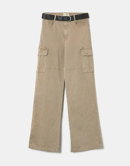 Pantaloni Cargo Beige Con Catena