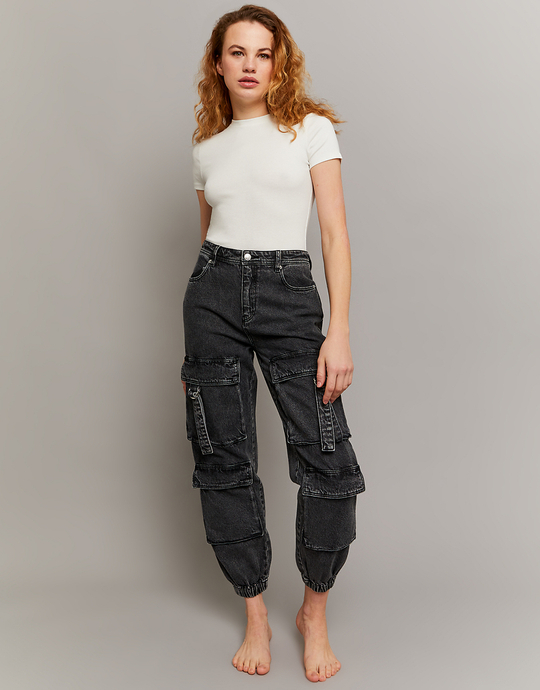 Jeans Jogger Cargo a Vita Alta Neri