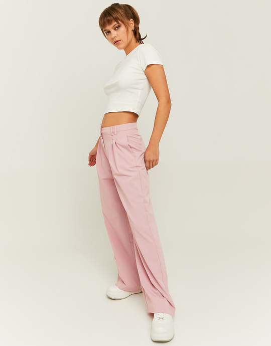Pantaloni Vita Alta a Gamba Ampia Rosa