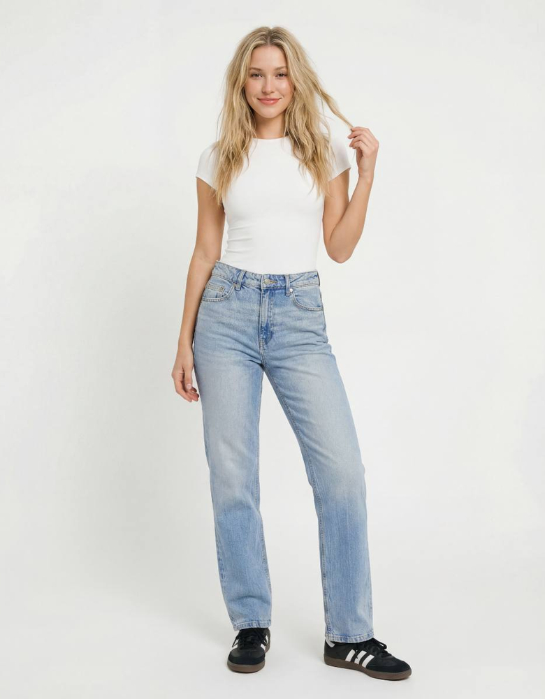 Jeans Dritti Blu a Vita Alta