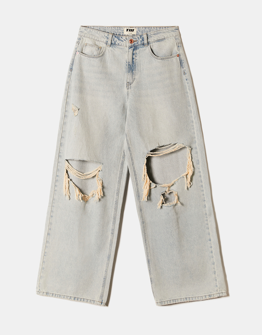 Jeans Baggy a Vita Media con Strappi