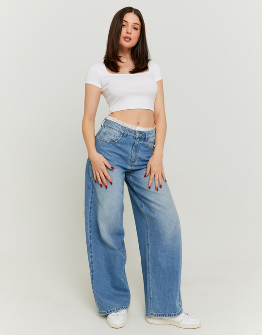 I Jeans Baggy con Dettaglio Boxer in Pizzo sono un mix perfetto di comfort e stile. Il colore blu rende questi jeans versatili, ideali per essere abbinati con vari top, da quelli casual a quelli più eleganti. La vestibilità loose offre una sensazione di comfort totale, mentre il dettaglio del boxer in pizzo aggiunge un tocco femminile e originale, facendo risaltare il design. Realizzati in materiale non-stretch, questi jeans mantengono la loro forma e sono perfetti per chi cerca un look rilassato ma alla moda. La vita media e il taglio ampio li rendono ideali per ogni tipo di corpo. Un capo che non può mancare nel tuo guardaroba! TALLY WEIJL è un membro orgoglioso di Better Cotton. Scegliendo i nostri prodotti in cotone, sosterrete il nostro investimento nella missione di Better Cotton. Better Cotton viene reperito attraverso un modello di catena di custodia chiamato equilibrio di massa.Ciò significa che il cotone Better Cotton non è fisicamente rintracciabile nei prodotti finali, tuttavia gli agricoltori Better Cotton beneficiano della domanda di cotone Better Cotton in volumi equivalenti a quelli che noi “acquistiamo”.