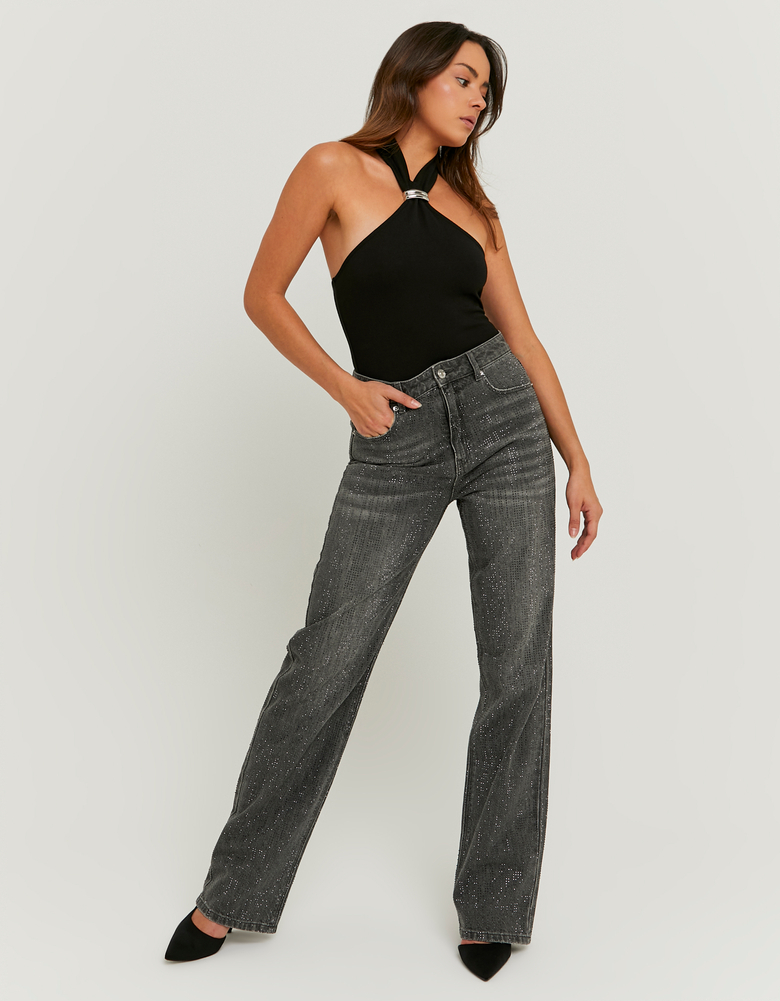 Jeans Grigi a Vita Alta e Gamba Dritta