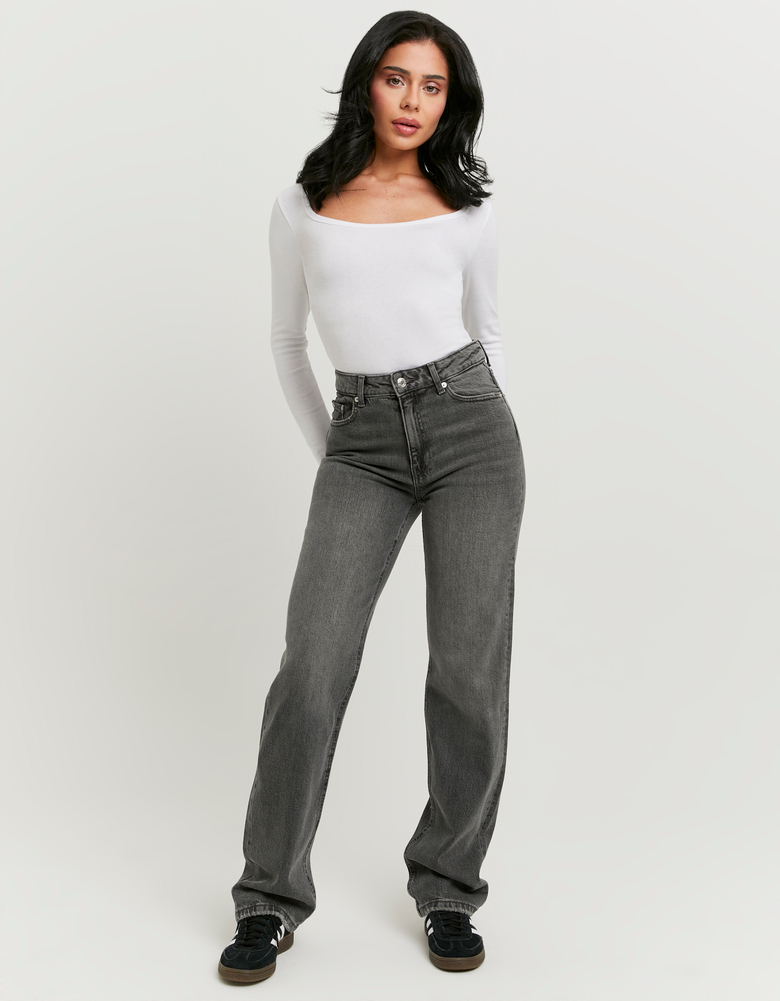 Jeans Dritti Grigi a Vita Alta
