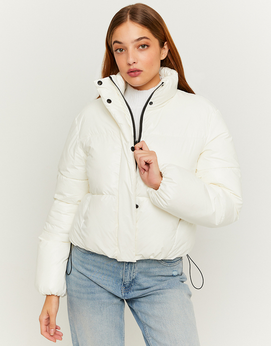 Piumino Corto Effetto Lucido Bianco