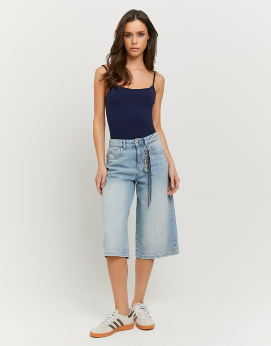 Bermuda in denim blu a vita media