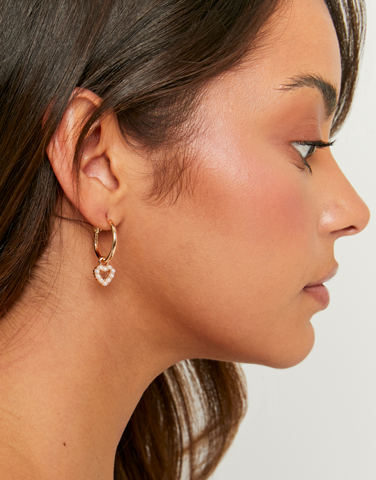 Romantic and elegant, this set includes two pairs of golden earrings designed to elevate your look. One pair features delicate heart shapes decorated with pearls, adding a soft feminine touch. The second pair is made of pearl-adorned hoops, perfect for a trendy and luminous finish. A versatile duo that you can mix, match, or wear solo depending on your vibe.