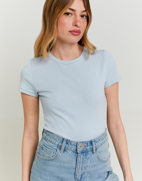 This light blue ribbed basic t-shirt is the perfect piece for a simple, fresh, and ultra-comfy look. Its ribbed cotton fabric gives it a lovely textured effect while offering a super soft feel. With its basic cut, round neckline, and short sleeves, it’s easy to pair with jeans, a skirt, or shorts for a casual everyday style. The light blue color adds a soft, bright touch, perfect for the spring-summer season. This solid top works with any vibe: wear it on its own for a minimalist look or layer it under a jacket for a more polished effect. It’s the kind of t-shirt you throw on without thinking, but it always makes an impression. I’m beautiful outside and inside. I am made with at least 50% organic cotton and minimum of 20% recycled cotton. Together we can make a difference.