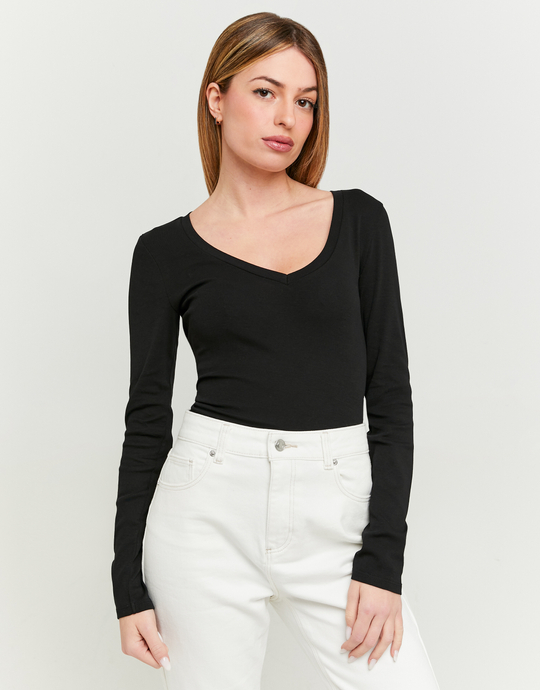 Keep it sleek and timeless with this Black Basic T-shirt, a must-have for any wardrobe! Designed with long sleeves and a comfy fit, it’s perfect for layering or wearing on its own. The plain black design gives it a versatile, minimalist vibe, making it easy to style for any occasion. Pair it with jeans, joggers, or skirts for a simple yet effortlessly cool look. TALLY WEIJL is a proud member of Better Cotton. By choosing our cotton products, you’re supporting our investment in Better Cotton’s mission. Better Cotton is sourced via a chain of custody model called mass balance. This means that Better Cotton is not physically traceable to end products, however Better Cotton Farmers benefit from the demand for Better cotton in equivalent volumes to those we “source”.