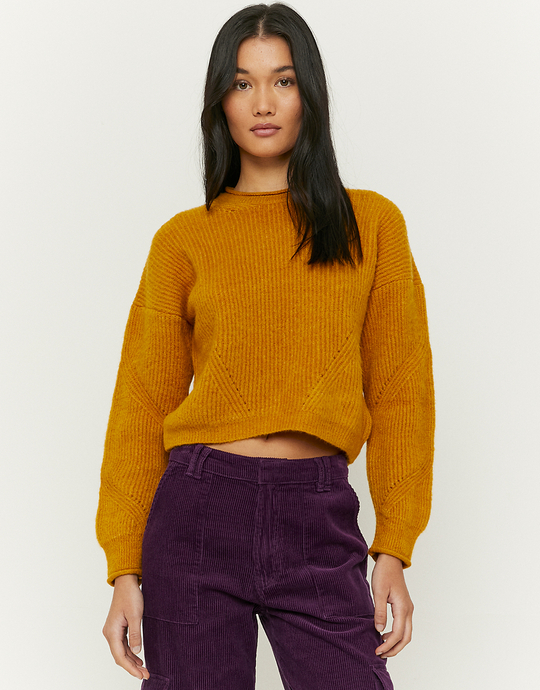 Żółty sweter z okrągłym dekoltem z dzianiny