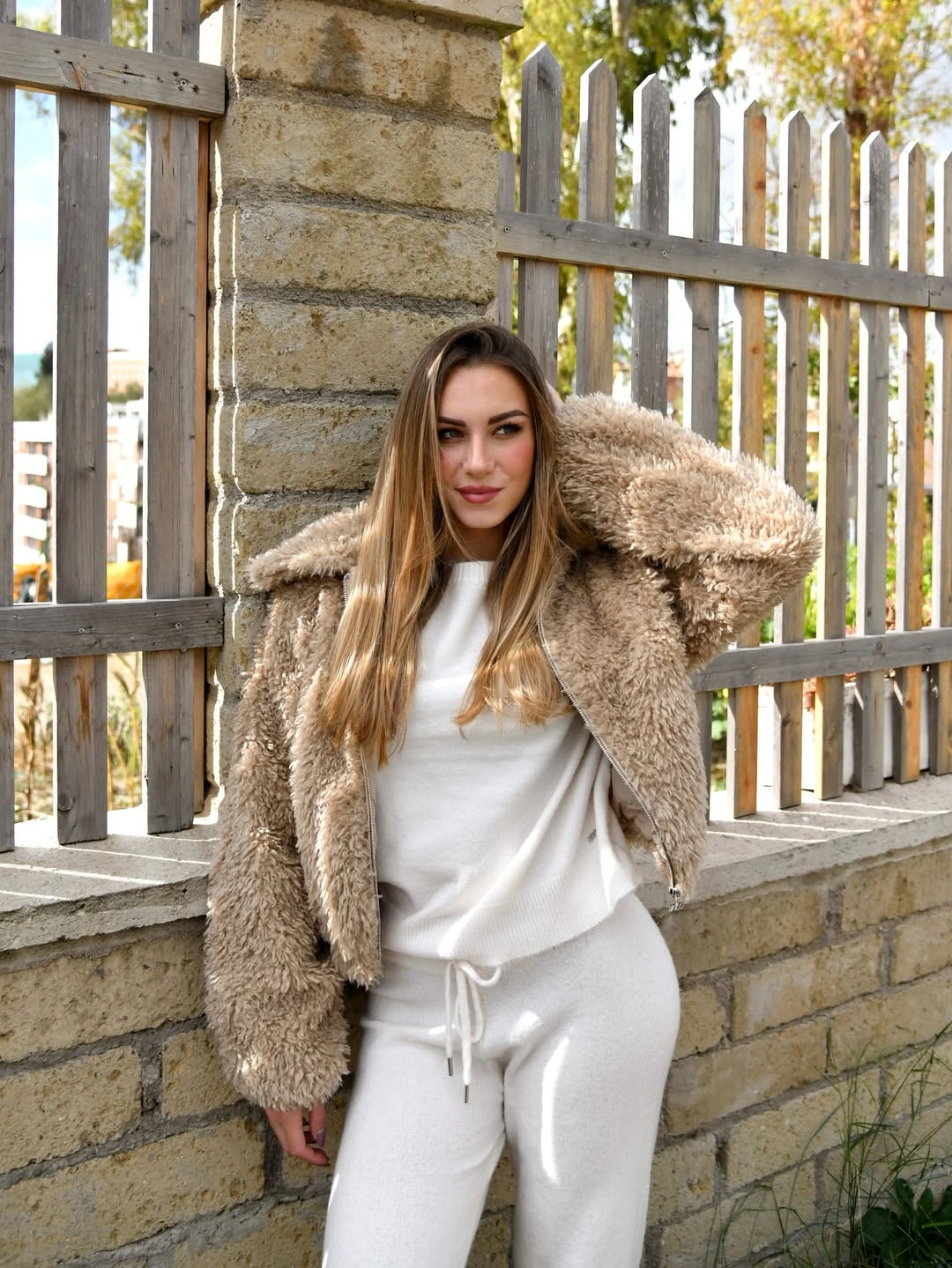 Beige Faux Fur Zip Up Jacket