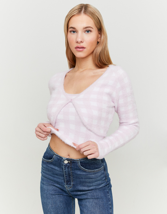 Pink Vichy Fluffy Cardigan
