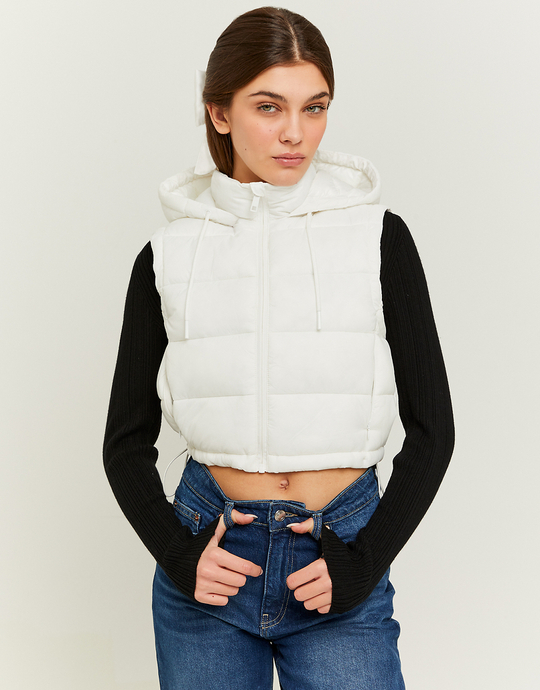 White Cropped Padded Vest with Hood