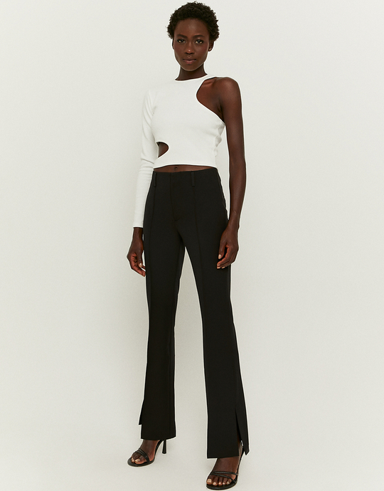 Czarne spodnie dzwony z wysokim stanem