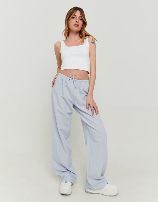 Light Blue Wide Leg Linen Trousers
